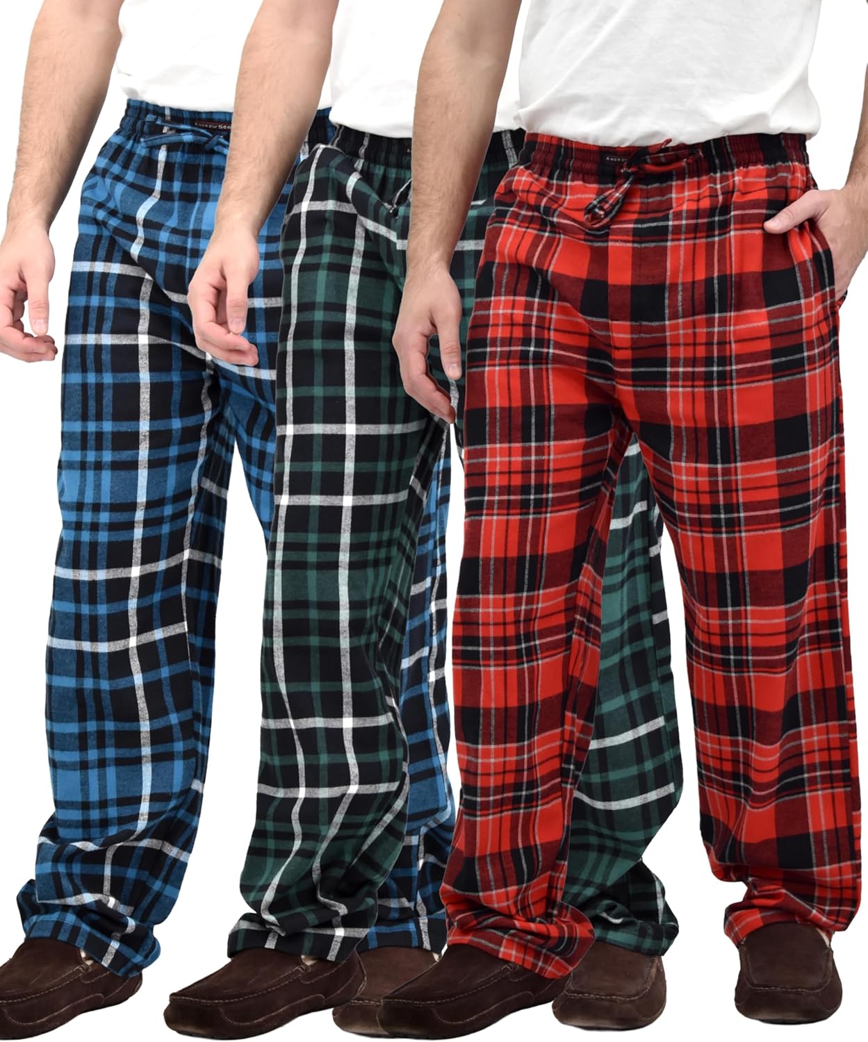Andrew Scott Men's 3 Pack Cotton Flannel Fleece Brush Pajama Sleep & Lounge Pants