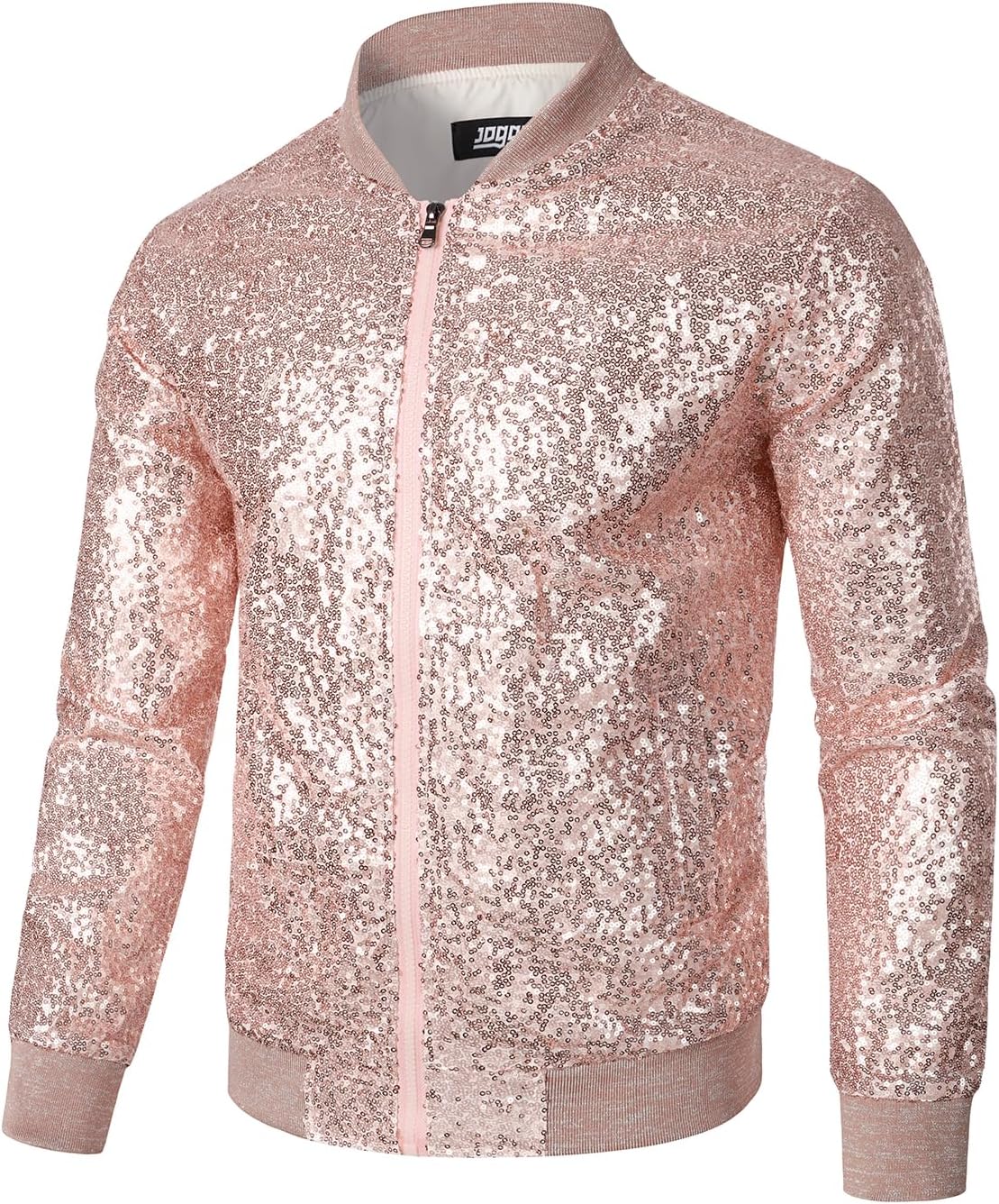 JOGAL Mens Sequins Nightclub Styles Zip up Varsity Baseball Bomber Jacket