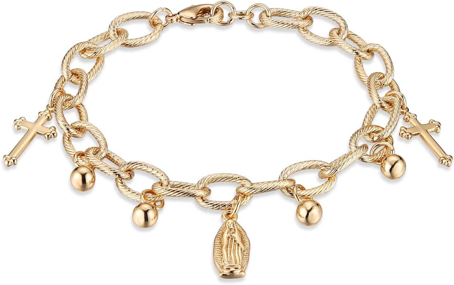 HZMAN 14K Gold Plated Cable Chain Bracelet for Women Dainty Rosary Bead Cross Virgin Mary Link Bracelet Jewelry Gift
