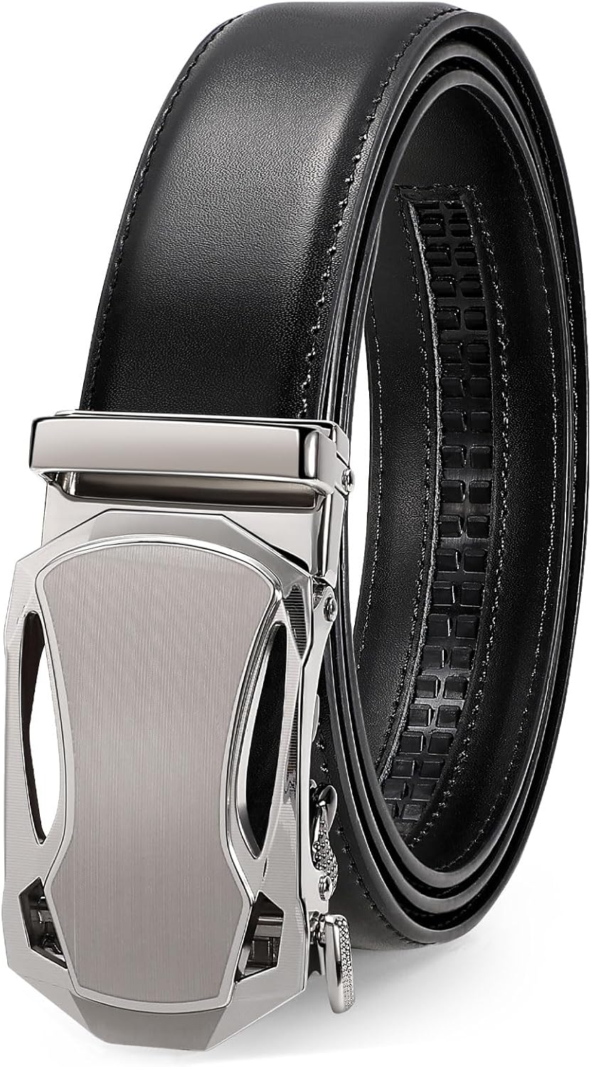 JASGOOD Mens Belt Ratchet Leather Belt for Men Dress Casual with Adjustable Buckle, Automatic Slide Belt Comfort Trim to Fit