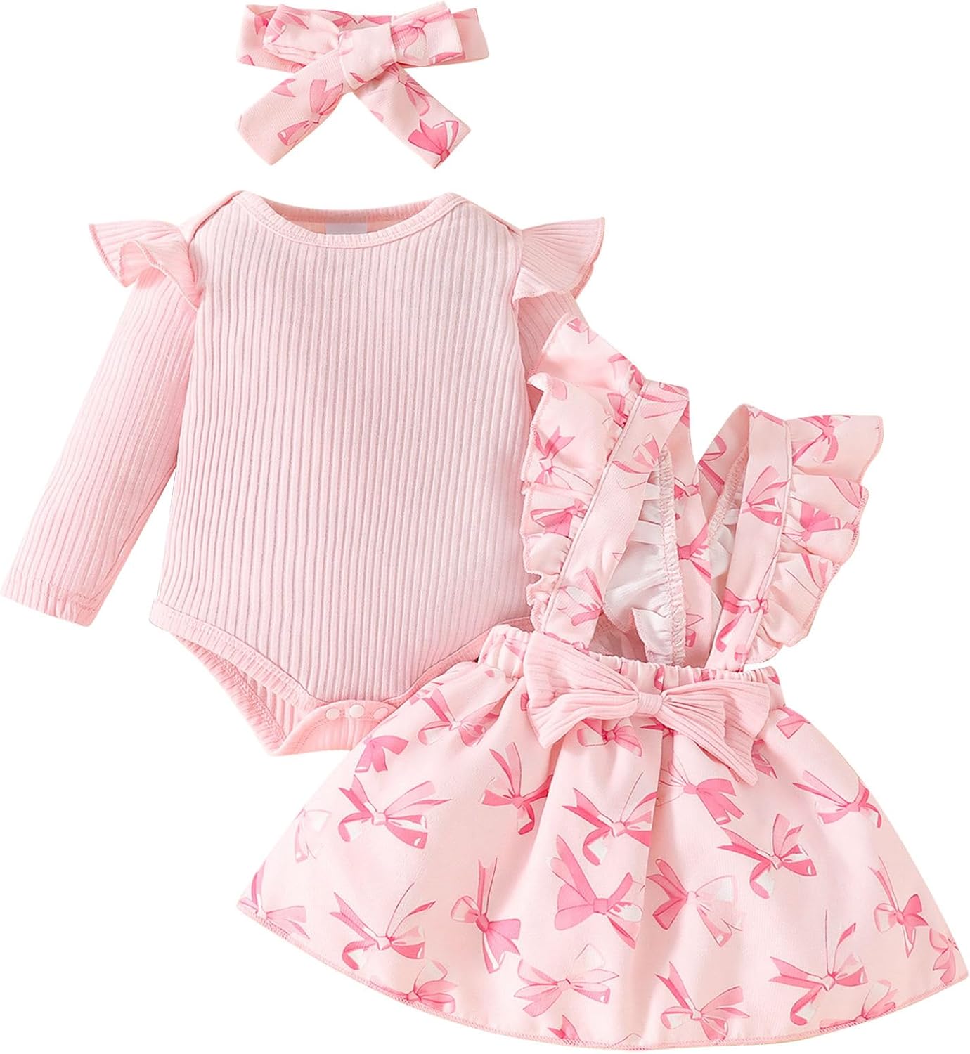 FYMNSI Baby Girls Fall Outfit Bow Print Ruffle Romper Suspender Tutu Skirt Headband 3PCS Infant Toddler Christmas Dresses
