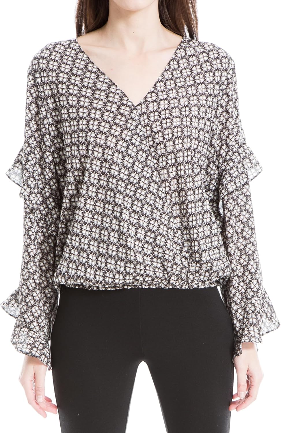 Max Studio Womens Crepe Long Sleeve Faux Wrap Blouse