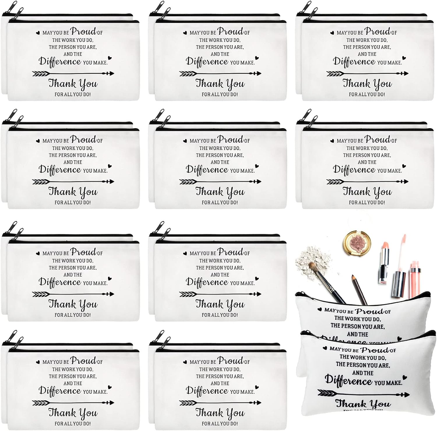 Hillban 20 Pieces Thank You Gift for Women, May You Be Proud of the Work You Do Makeup Bags Appreciation Gift for Coworker Employee Teacher Nurse Volunteer, Inspirational Cosmetic Bag with Zipper