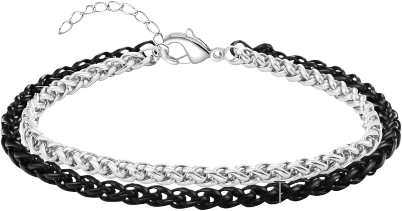 Mens Bracelet - Stainless Steel Bracelets for Men, Stylish Rope Chain Bracelets, Silvering Mens Chain Bracelet, Birthday Gift for Men, Dad, Husband, Boyfriend