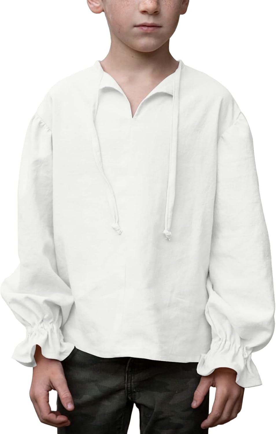 Bbalizko Boys Medieval Pirate Costume Shirt Kids Medieval Renaissance Ruffled Long Sleeve Halloween Scottish Jacobite Tops