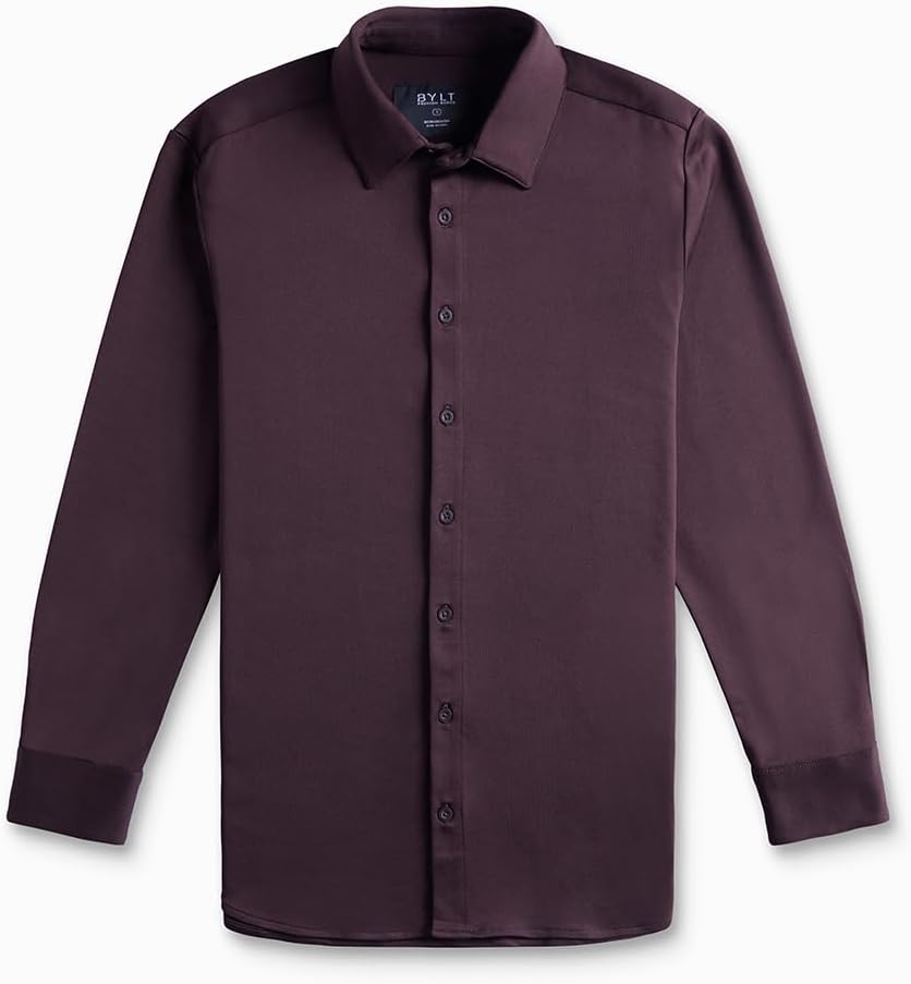 BYLT Exec Button Down Long Sleeve Men's Shirt - Professional Stretch Moisture Wicking Business Casual Dress Shirt