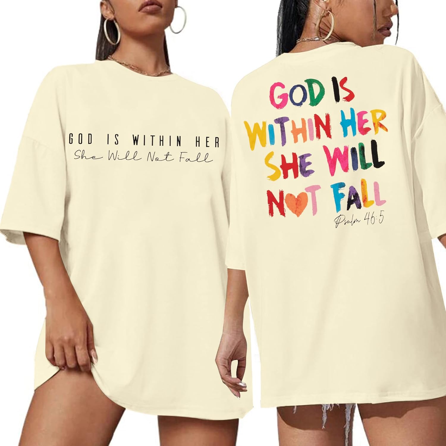 Oversized Christian Shirts for Women God is Within Her T Shirt Casual Christians Inspirational Tee Tops
