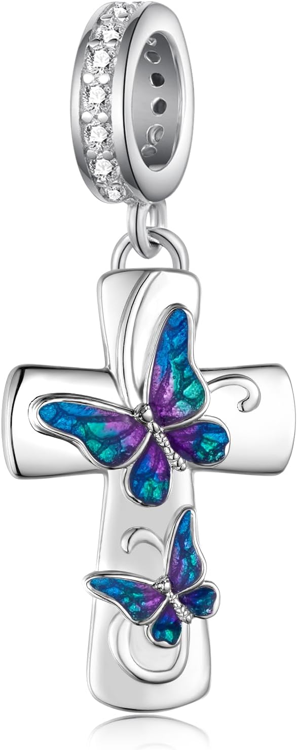 Cross Charm 925 Sterling Silver Butterfly Cross Charm Christian Jewelry Gifts for Women