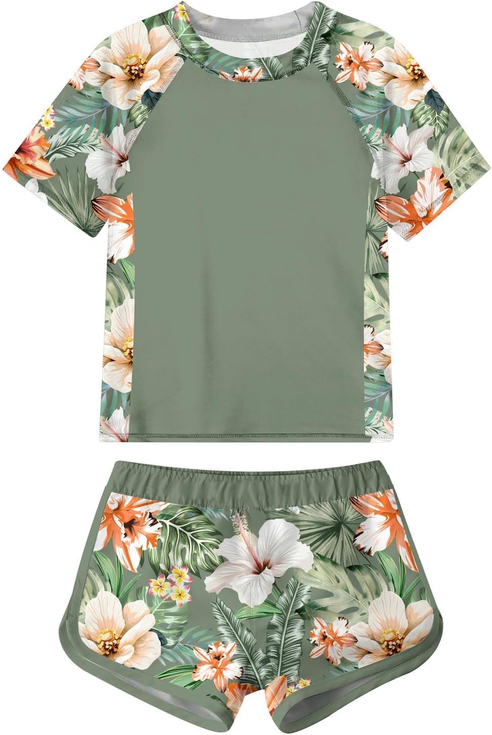 Idgreatim Girls Rashguard Swimsuit 2 Piece Short Sleeve Bathing Suit UPF 50+ Sun Proction Swimwear Size 8-16T