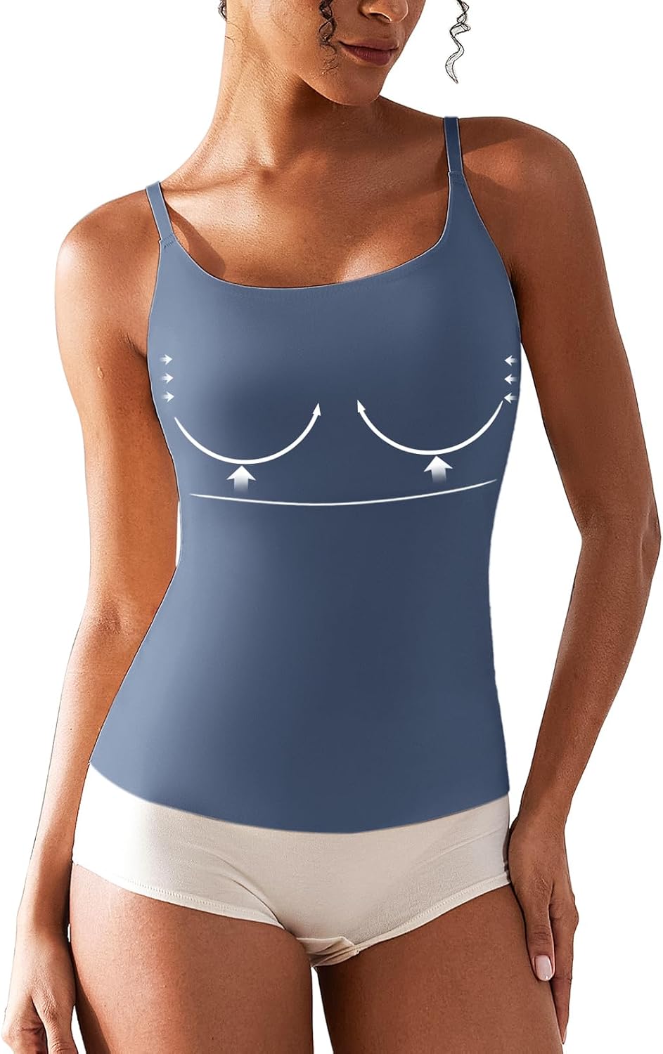 V FOR CITY Women's Tank Top with Built in Bra Adjustable Strap Camisole Top Summer Sleevless Cami Shirt