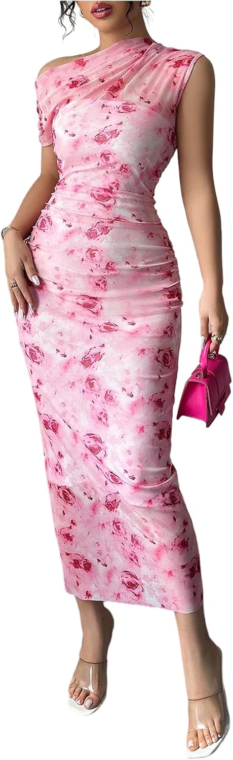 Floerns Women's Off The Shoulder Long Dress Sleeveless Floral Mesh Summer Bodycon Dresses