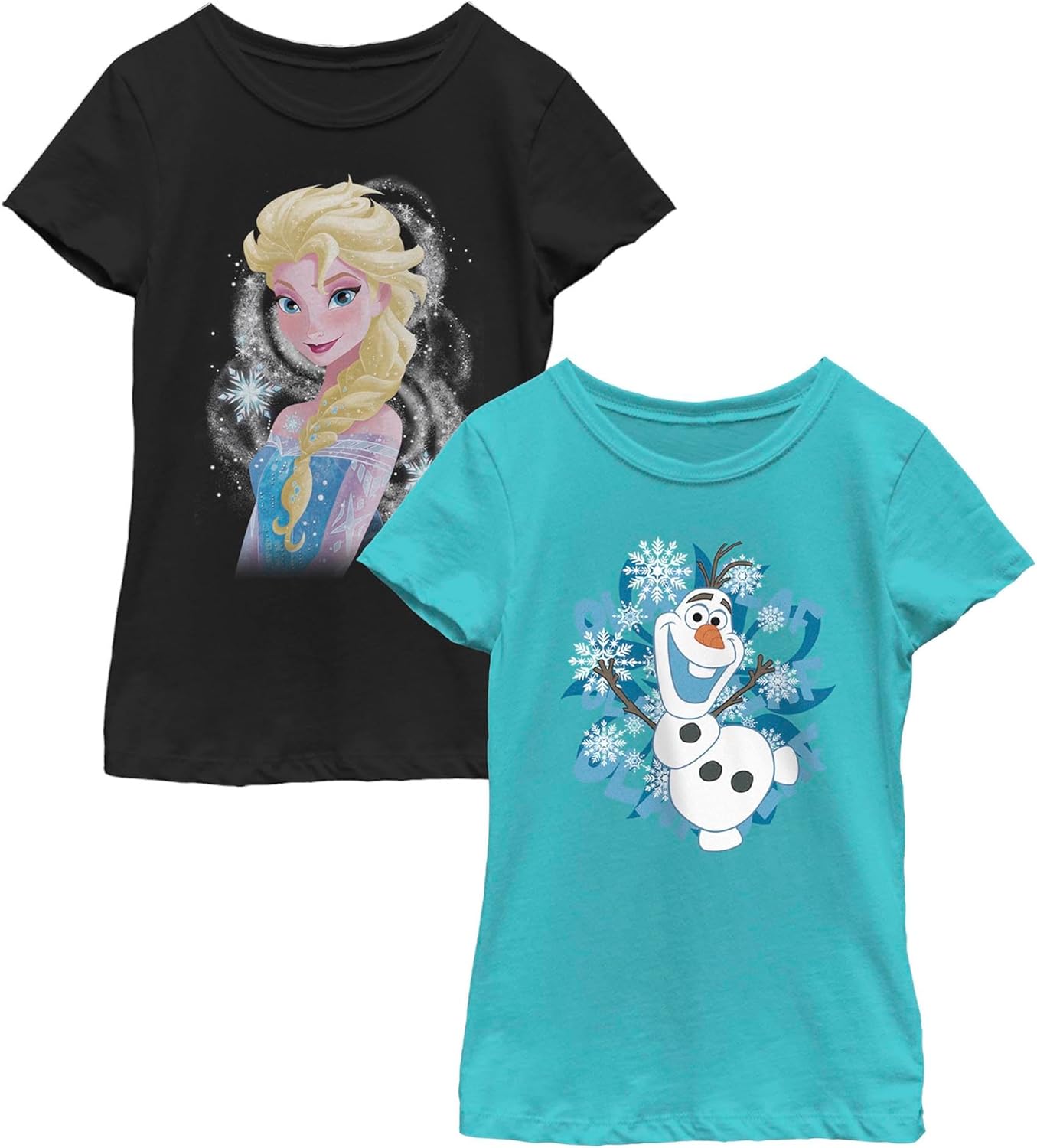 Fifth Sun Girl's Frozen Elsa and Olaf Friends 2-Pack T-Shirt