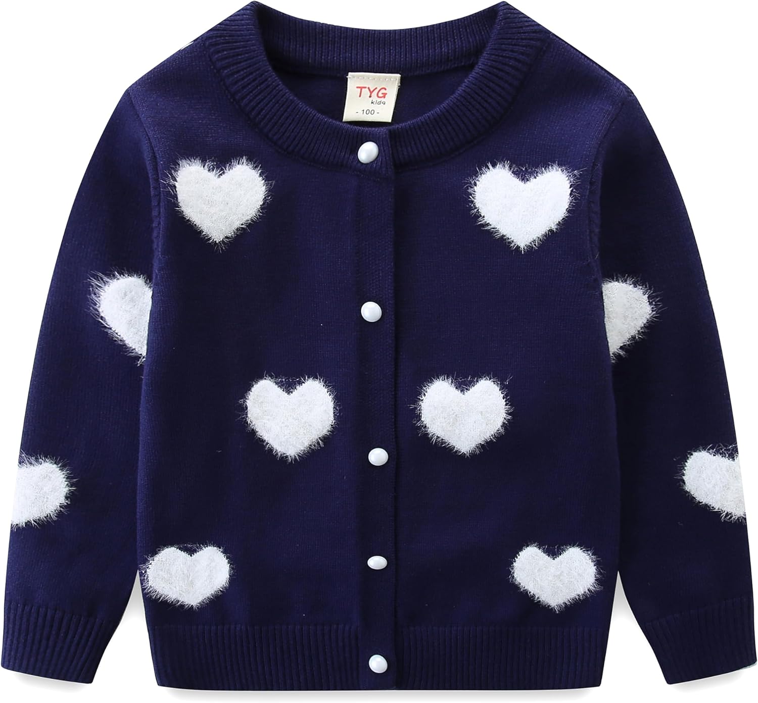 Toddler Girls Heart Front Cardigan Fall Winter Long Sleeve Button Closure Knit Sweater Coat
