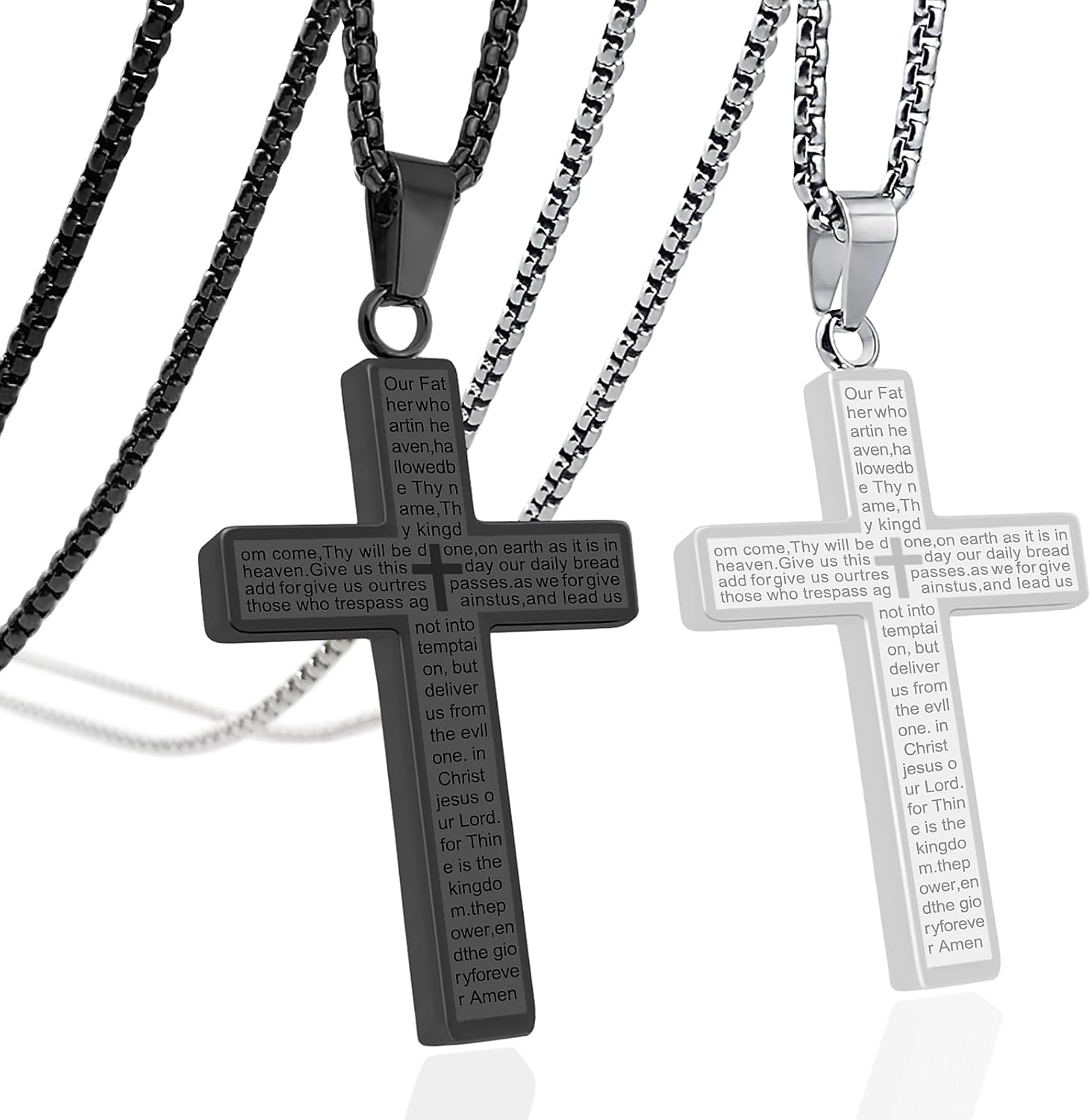 2 Pcs, Prayer Cross Necklace for Men, Smooth Faith Cross Necklace, Religious Christian Jewelry Gift, Christmas and Easter Jewelry Gift for Friend