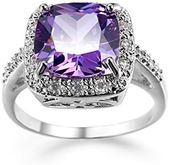 JerMrasra Birthstone Rings for Women White Gold Amethyst Cocktail Rings Purple CZ Engagement Ring Princess Cut Square Cubic Zirconia 925 Sterling Silver Shiny Full Diamond Ring for Women(7)