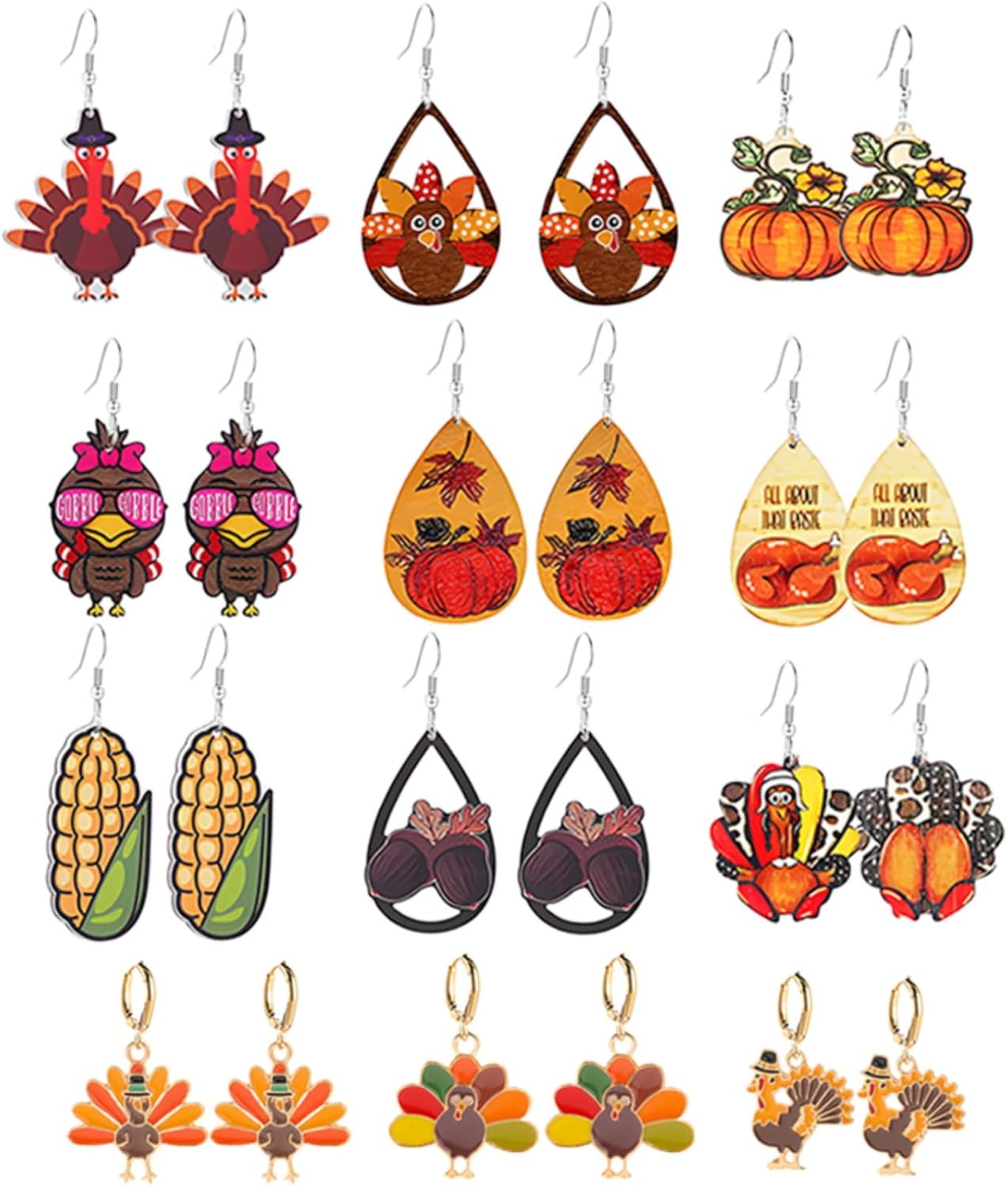 WCRAZYE 24 Pcs Thanksgiving Fall Earrings for Women Cute Pumpkin Sunflower Maple Leaf Candy Corn Squirrel Turkey Autumn Fall Earrings Thanksgiving Autumn Party Jewelry Gifts