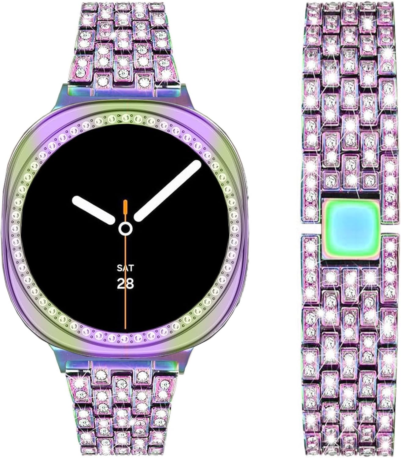 Bands and Case Compatible with Samsung Galaxy Watch 8 40mm / 44mm, Bling Rhinestone Diamond Metal Bracelet with Shiny Protective Case Cover Replacement for Women Men