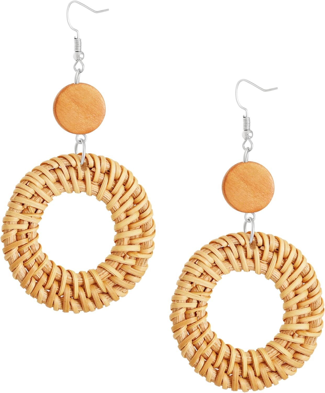 MINACHI Boho Chic Handmade Rattan Wood Dangle Drop Earrings for Women, Bohemian Summer Beach Statement Jewelry Gift for Women