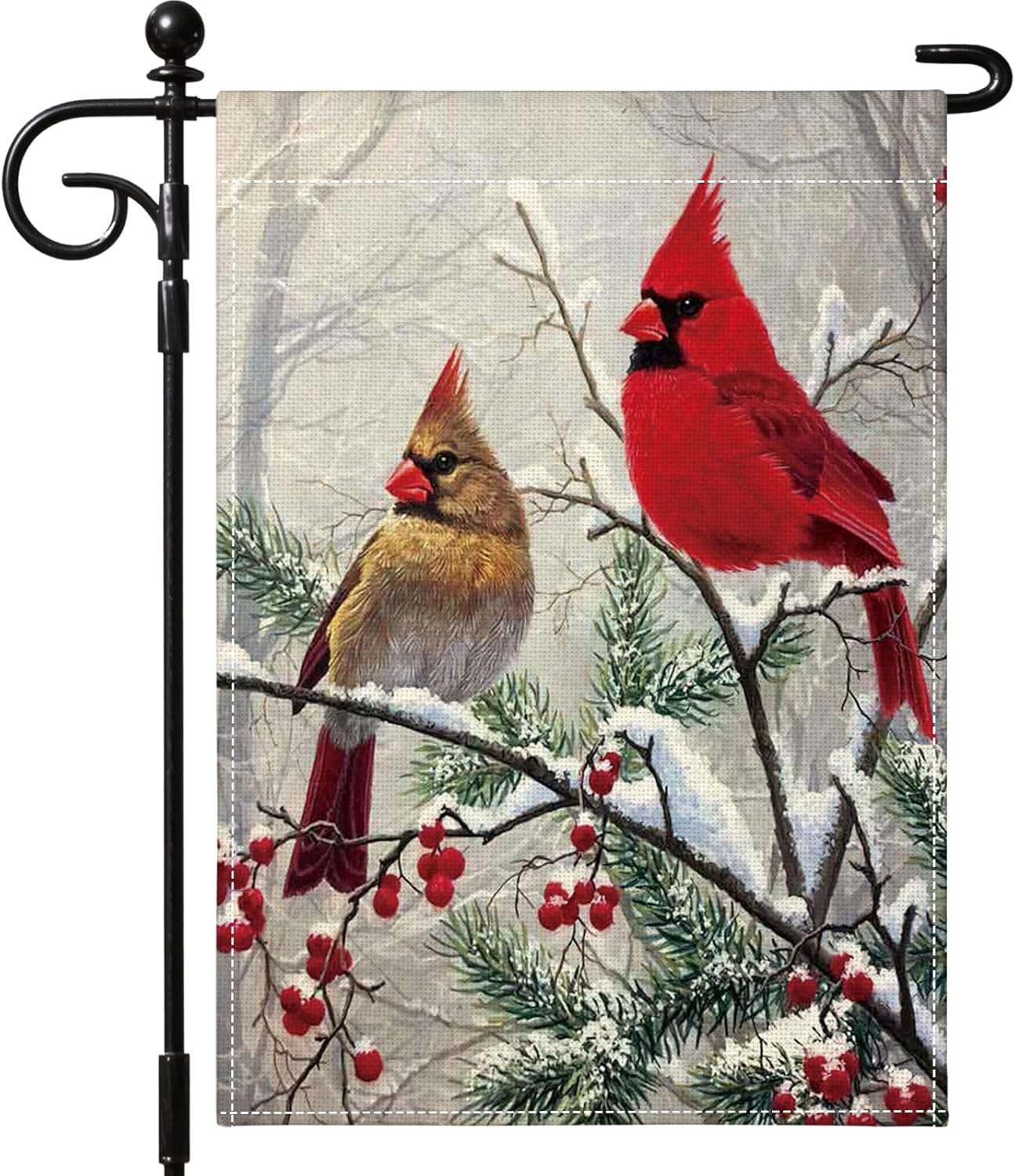 OTOSTAR Winter Bird Christmas Garden Flags 12x18 Inch Outside Double Sided Red Birds on Tree Branch Yard Flag Farmhouse Outdoor Decor