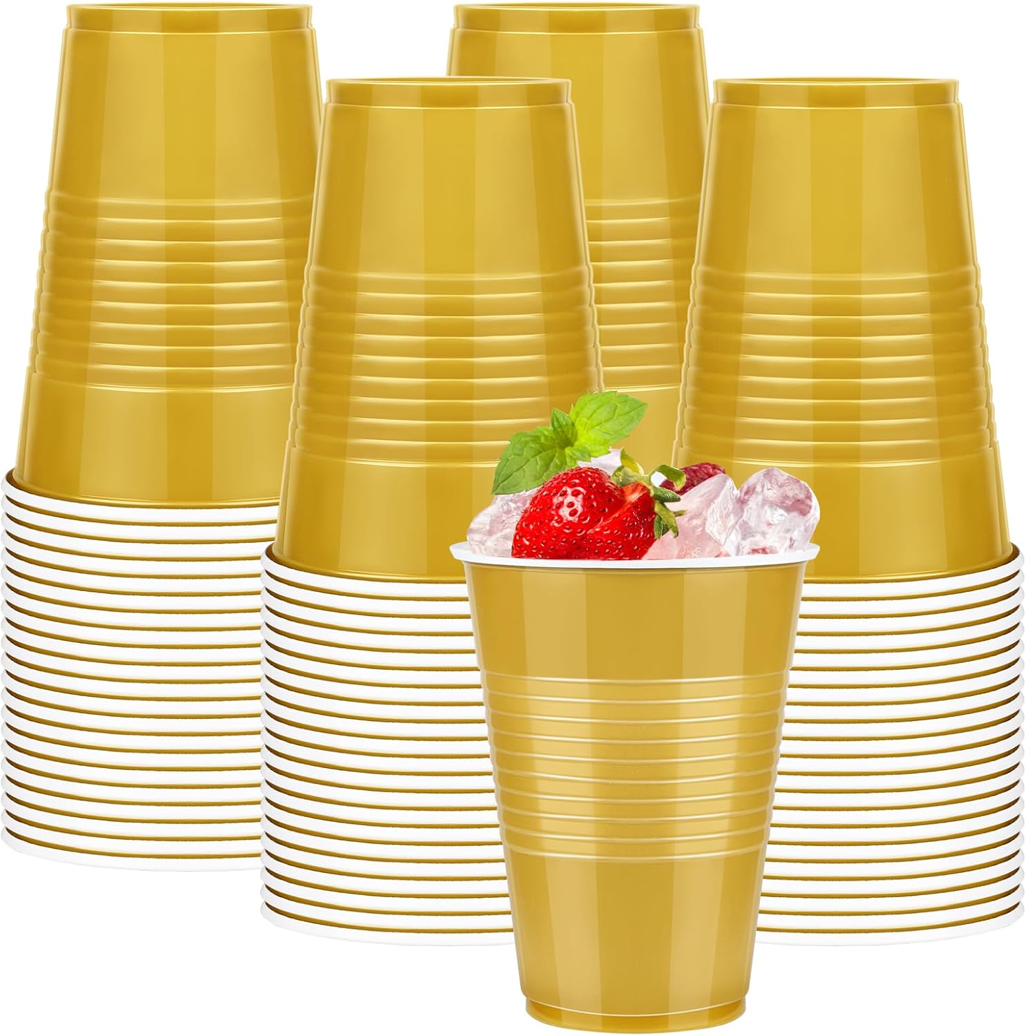 - Material: Made from plastic,these gold plastic cups are designed to hold drinks. Enjoy the convenience of using them at any party