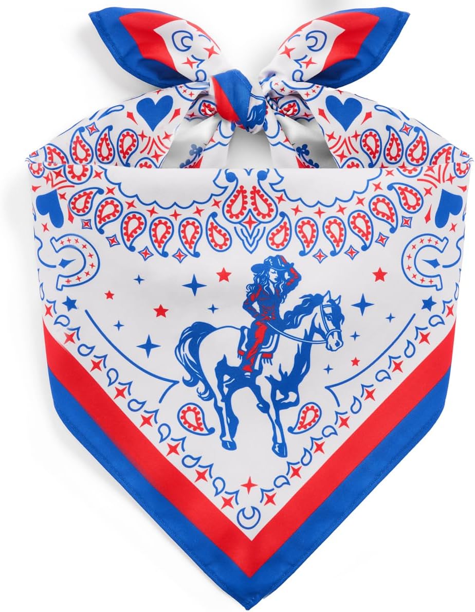 xo, Fetti American Cowgirl Bandana, 27" x 27" | Last Rodeo Bachelorette Party, Western Birthday Accessory, Cowboy Head Scarf, USA Decorations, Bridesmaid Gift, Bach Favor