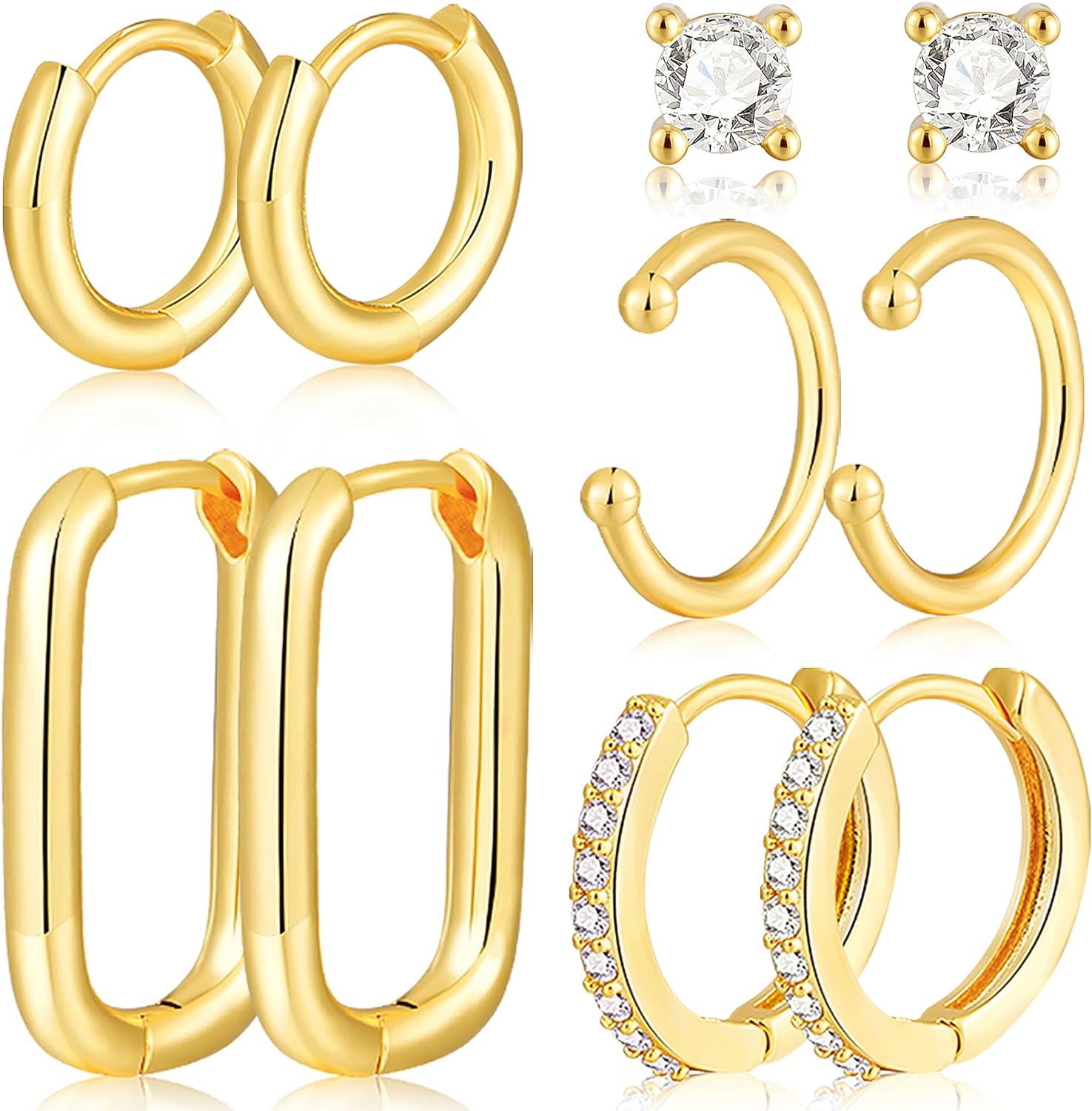 Small Gold Hoop Earrings Set for Women, 14K Gold Plated Lightweight Earrings Sets for Multiple Piercing, Hypoallergenic Huggie Gold Hoops Earrings for Women Jewelry