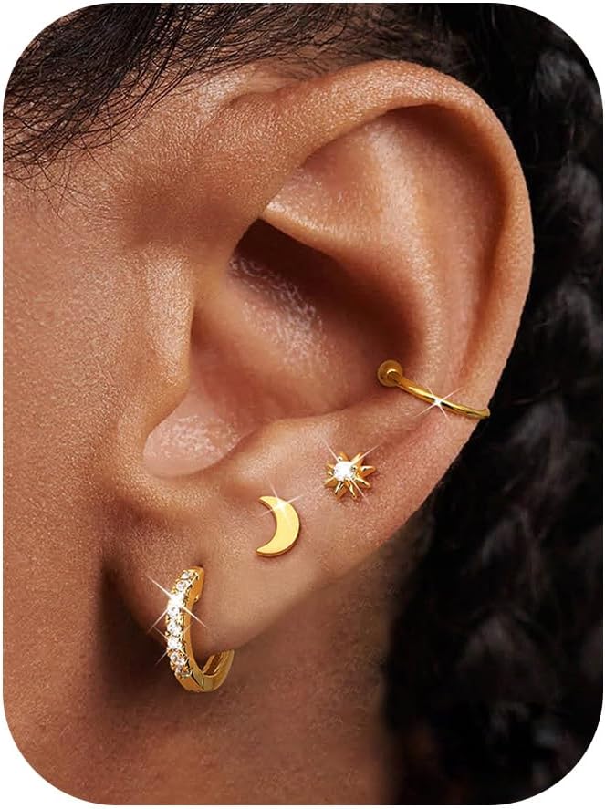 ORAZIO Small Gold Hoop Earrings for Women Hypoallergenic 14K Gold Plated Chunky Huggie Earring Sets for Multiple Piercing Dainty Earing Stacks Set Cute Silver Cartilage Jewelry Trendy Gifts