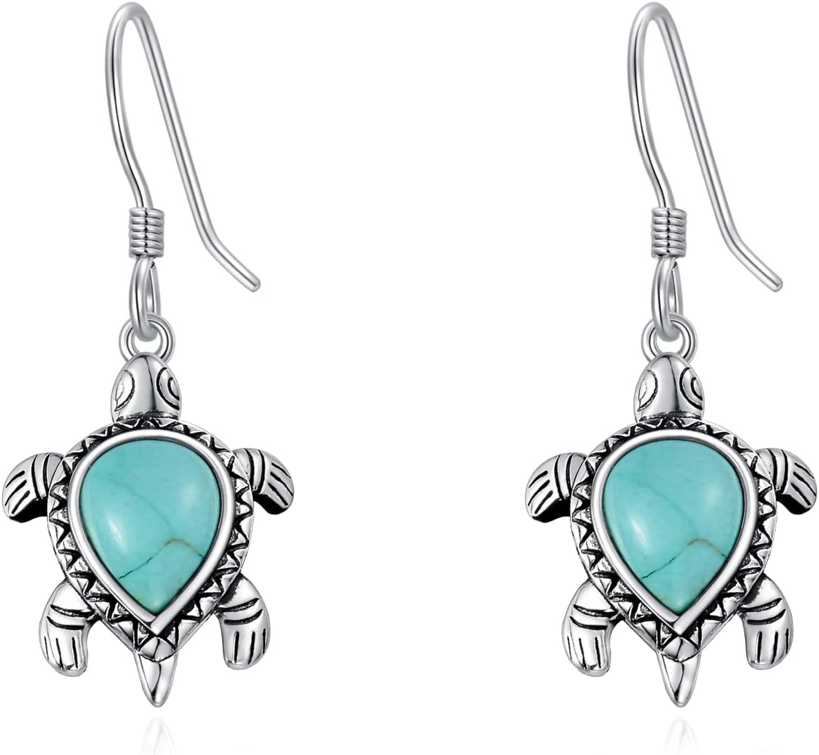 Turquoise Turtle Earrings for Women, 925 Sterling Silver Genuine Turquoise Statement Fashion Dangle Earring for Birthday Mothers Day Christmas