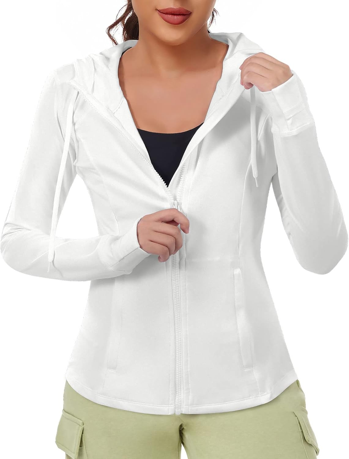 - 💙MULTIPLE OCCASION: Full zipper with zip garage to avoid chafing your chin; Hooded Yoga Jacket perfectly cover your head when running, yoga, cycling, hiking, gym fitness, outdoor sports, or everyday use.Perfect if you're looking for just a little extra warmth for all-day wearing.This jacket with a hood is lightweight so it can be worn as an outer-layer for spring and fall, or as a mid-layer for winter.