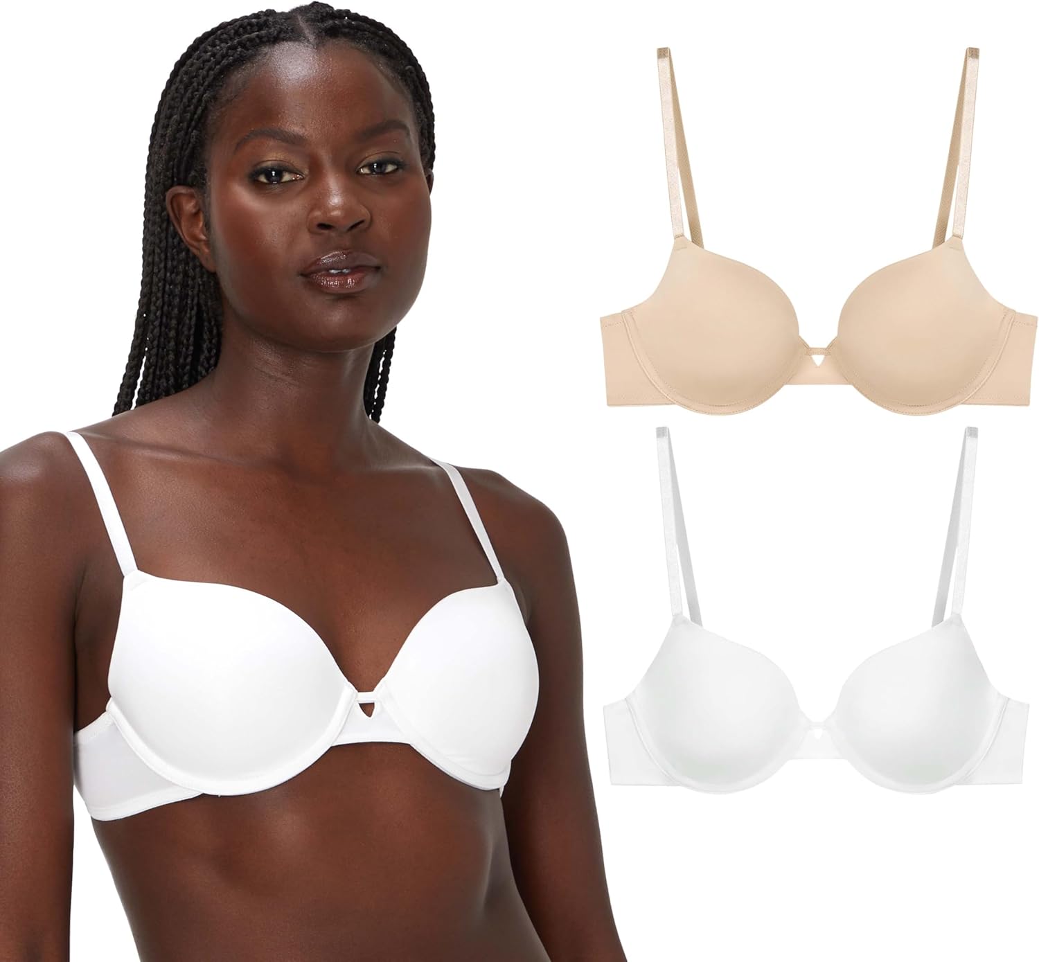 Maidenform Womens Underwire Bra, Demi T-Shirt Underwire Bra, Convertible Bra for Women, 2-Pack