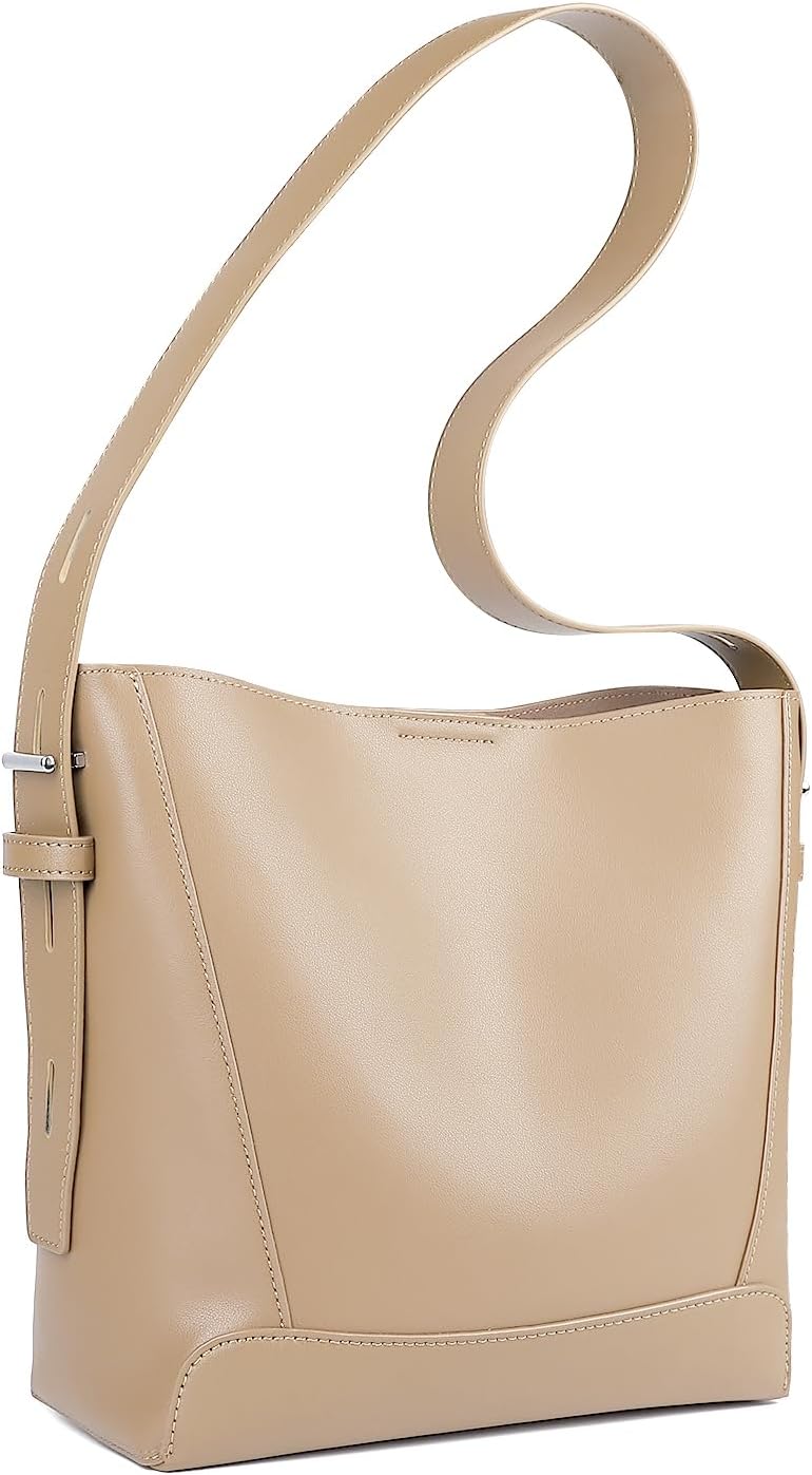 Genuine Leather Tote Bag, Shoulder Purse for Women, Medium Bucket Handbags, Hobo Crossbody Bags, Adjustable Strap