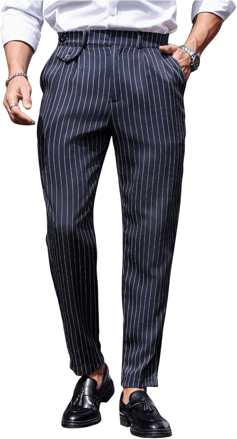 GORGLITTER Men's Striped Dress Pants Slacks Slim Fit Business Work Suit Long Trousers (Size Up, Runs Small)
