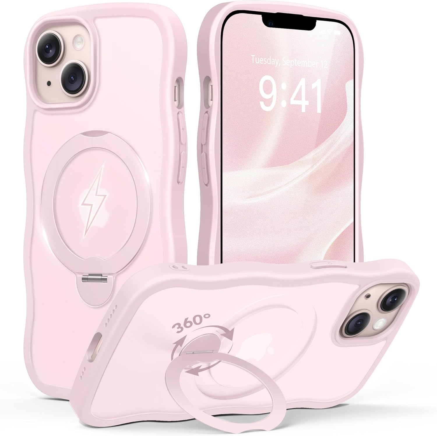![for iPhone 13 Case & iPhone 14 Case for Women,[Compatible with Magsafe][360° Spin Magnetic Stand][Cute Wave Edge][Military-Grade Protection]Translucent Matte Phone case for iPhone 13/14, Chalk Pink - Image 7](https://m.media-amazon.com/images/I/81S47ouJKKL._AC_SL1500_.jpg)