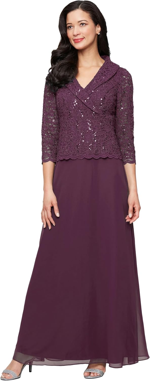 Alex Evenings Womens 3/4 Sleeve Portrait Collar Stretch Lace Bodice Mother of The Bride Dress (Petite and Regular Sizes)