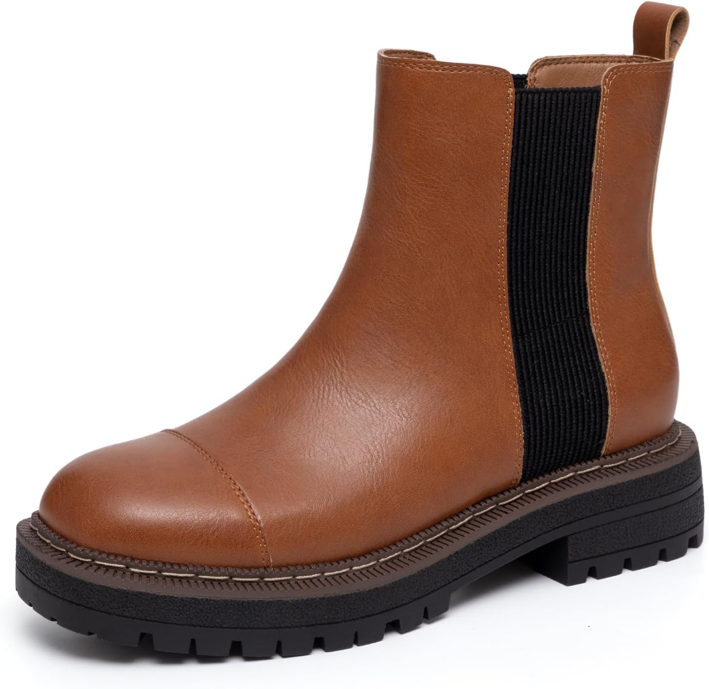 Athlefit Women's Chelsea Boots Platform Chunky Heel Slip On Elastic Lug Sole Ankle Booties