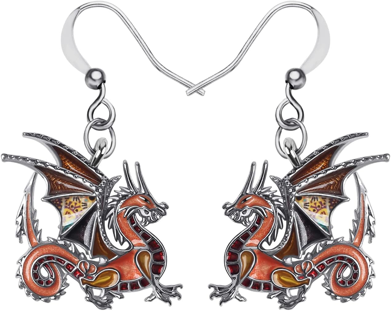 Enamel Alloy Dinosaur Fantasy Dragon Earrings Drop Dangle Unique Animal Jewelry For Women Dragons Gifts