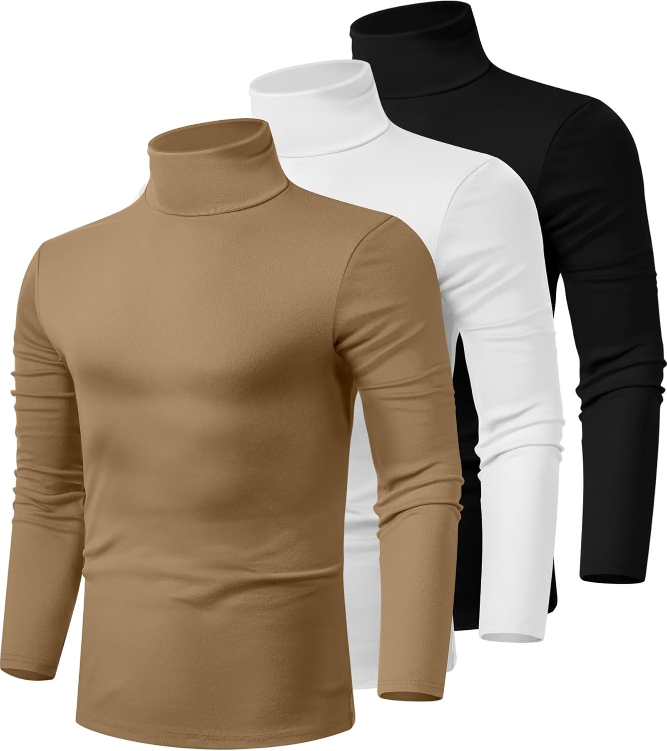 Ficerd 3 Pack Men's Turtleneck Shirts, Long Sleeve Cotton Pullover Sweaters Mock Neck Knitted T-Shirt Basic Slim Fit Tops