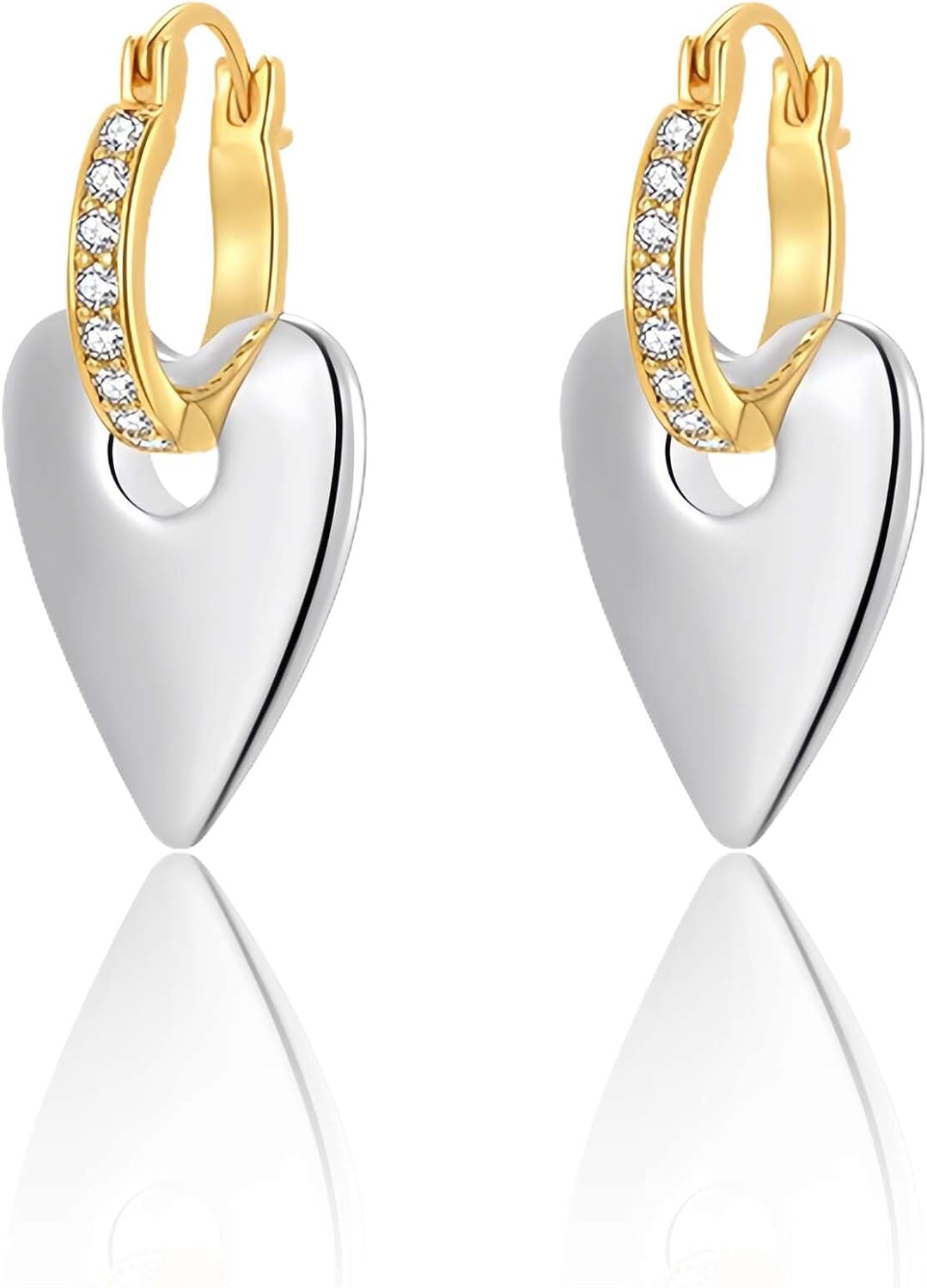 14K Gold Plated Huggie with Dangle, Hypoallergenic Heart Drop Earrings for Women, Gift for Mom Wife Her by Febsky