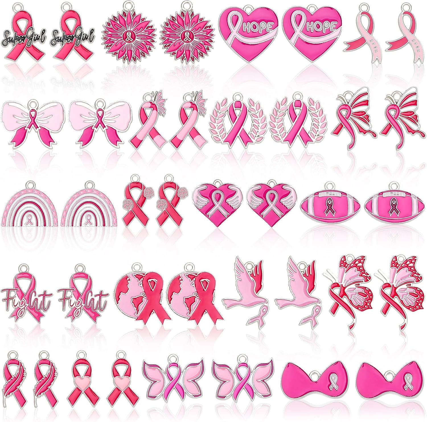 - Package Content:You will receive 40 pieces breast cancer awareness charms, totaling 20 pieces, 2 pieces of each style, symbolizing hope, courage and support, suitable for DIY ornaments, commemorative activities and public welfare gifts