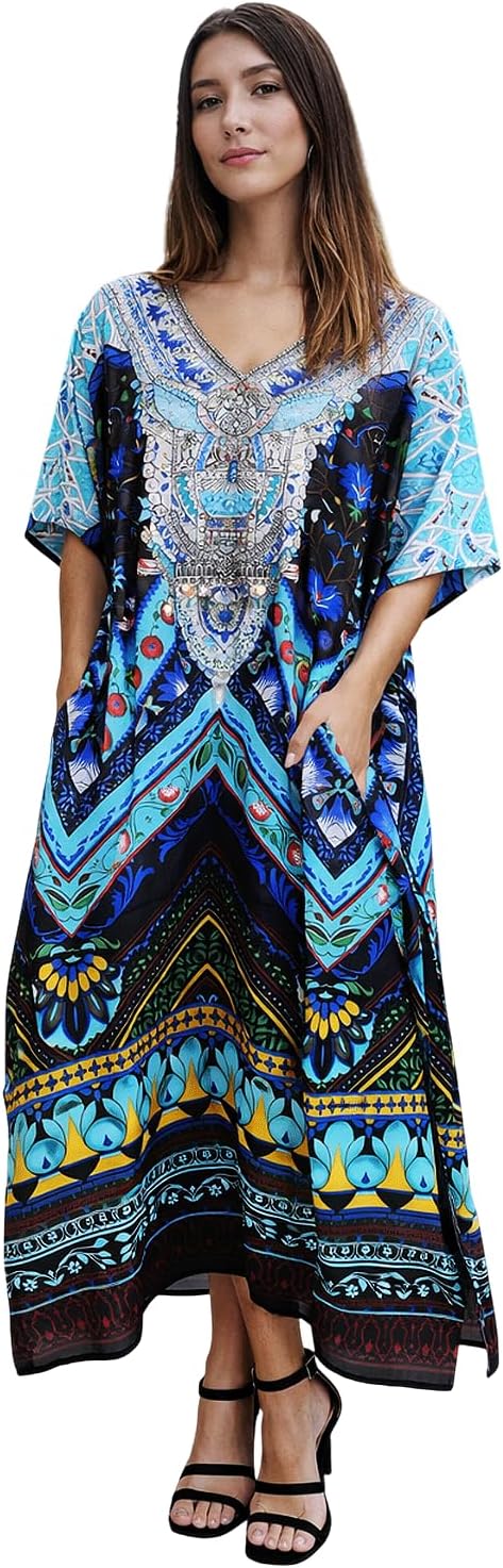 Miss Lavish London Women’s Kaftan Maxi Dress, Plus Size Swim Coverup, Resort Wear, Cruise Vacation Dress, Summer Kaftan