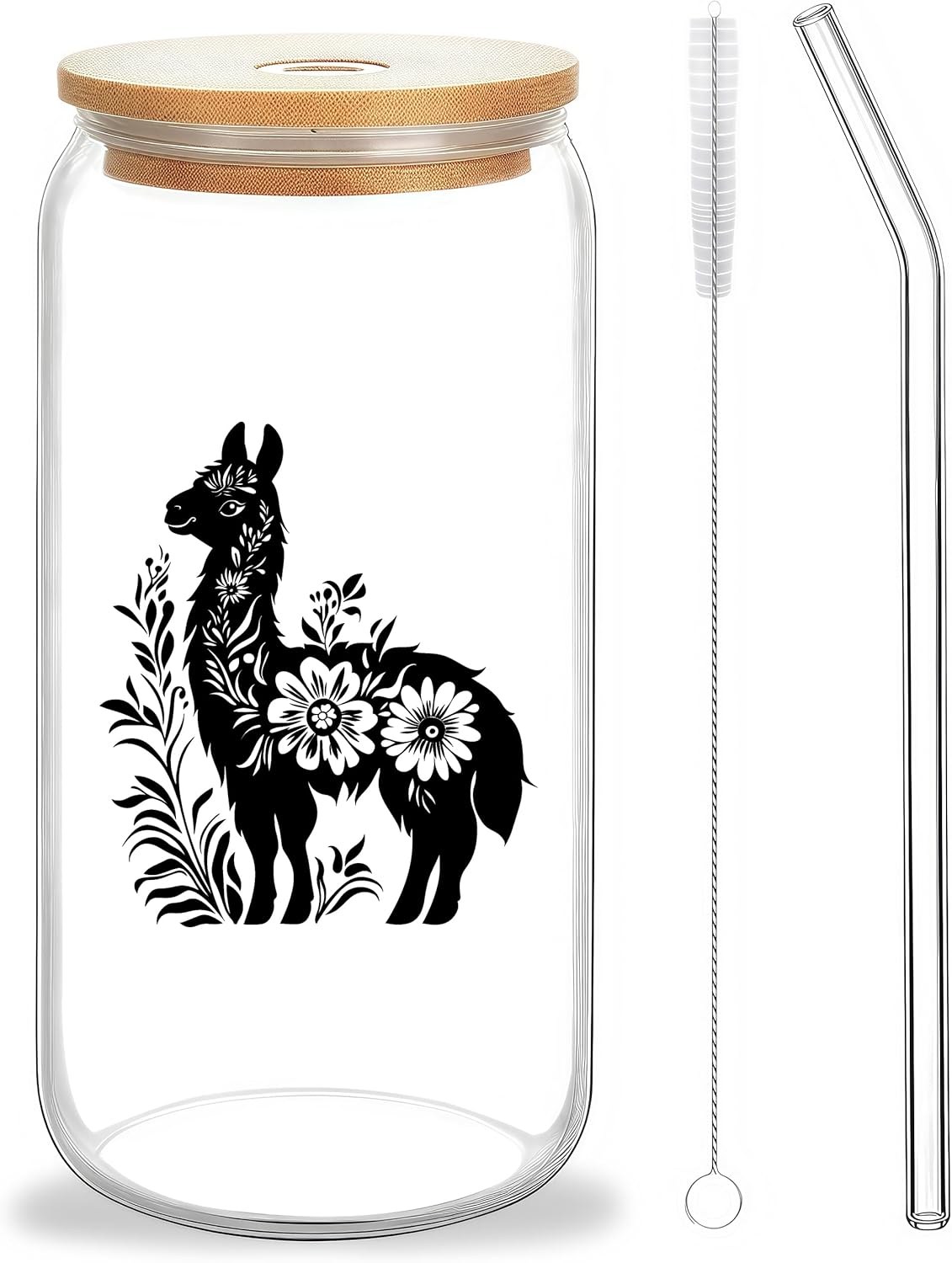 Cute Llama Glass Cup With Lids And Straws, Llama Gift For Women, Iced, Coffee, Smoothie, Cocktail, Beer, Whiskey, Soda, Matcha,16 Oz, Home Office Table Desk Decoration!