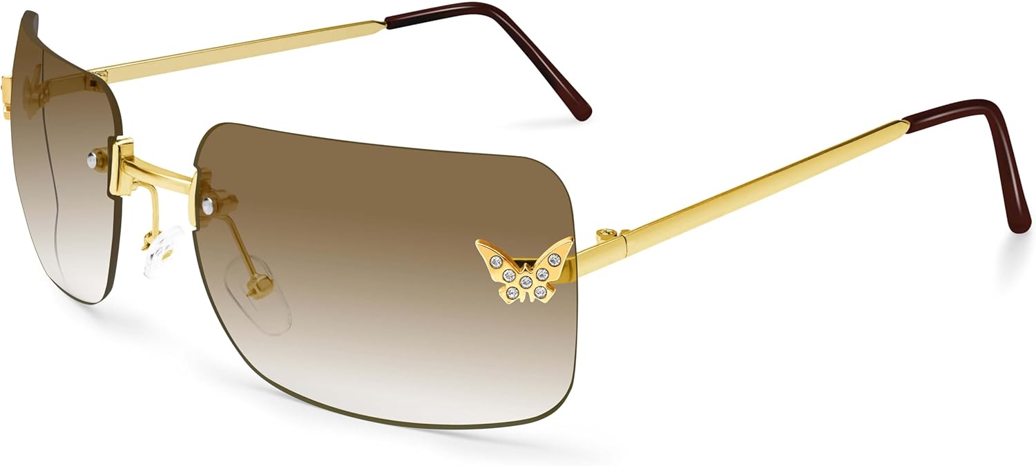 Dollger Rectangle Y2k Sunglasses for Women Fashion Rimless 2000s Square Sun Glasses Butterfly 90s Cool Shades