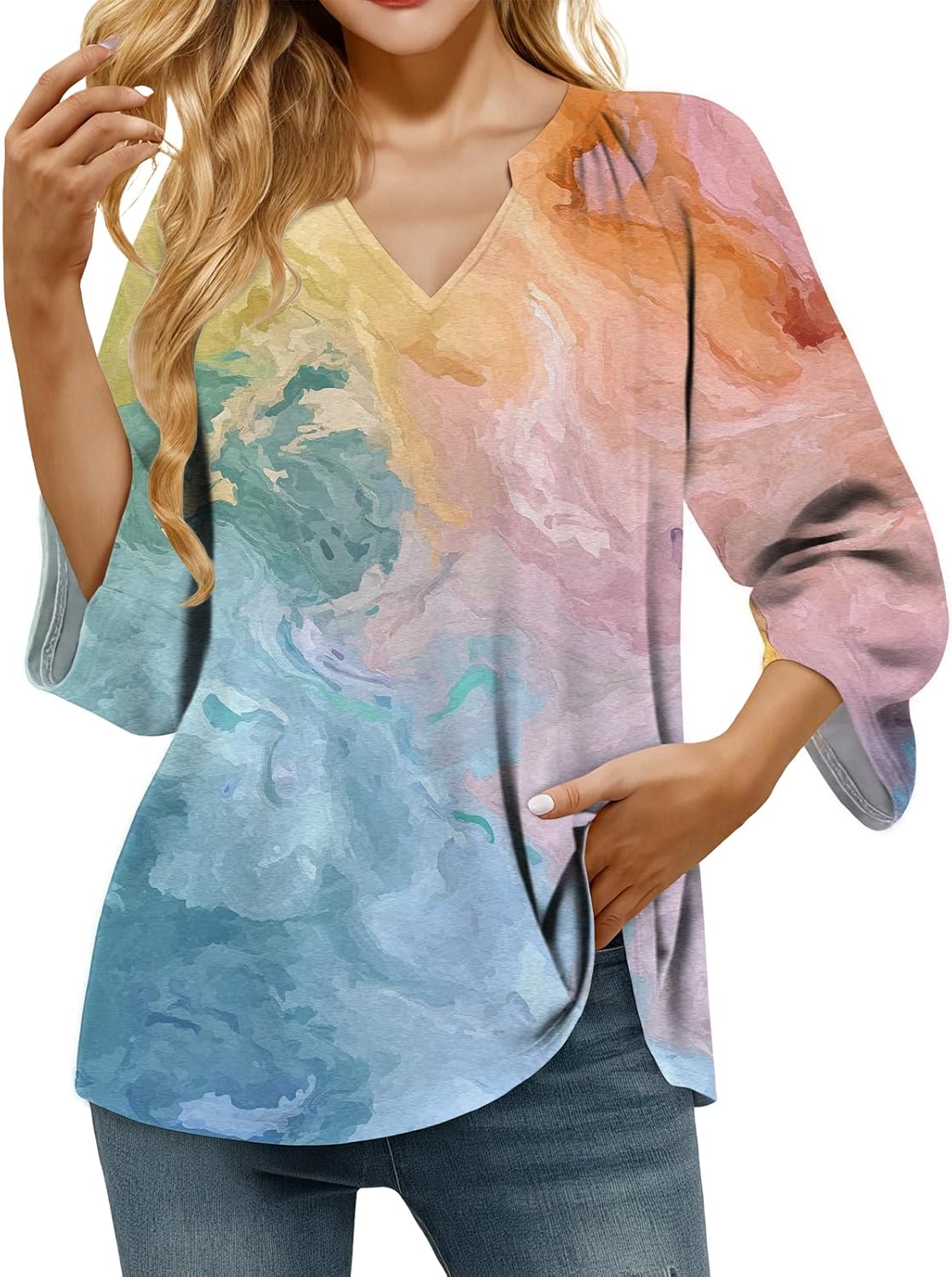 - Material: This women's long-sleeved top is soft, comfortable and breathable. It is made of lightweight polyester fabric. It is suitable for various washing methods, such as hand washing, machine washing, dry cleaning and water washing.Women Long Sleeve Sun Shirt 2025 Long Sleeve V Neck Blouses Tie Dye Style Printed Business Casual Retro Tops Basic Tee Soft and Comfy Loose Fit Trendy Clothes.