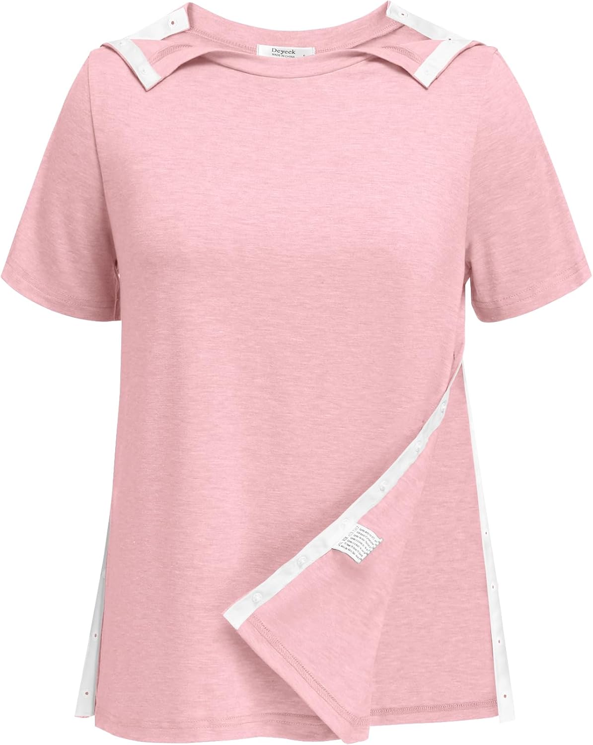 Deyeek Post Shoulder Surgery Shirts for Women Tear Away Side Snap Chemo Port Shirts Short Sleeve Adaptive Clothing