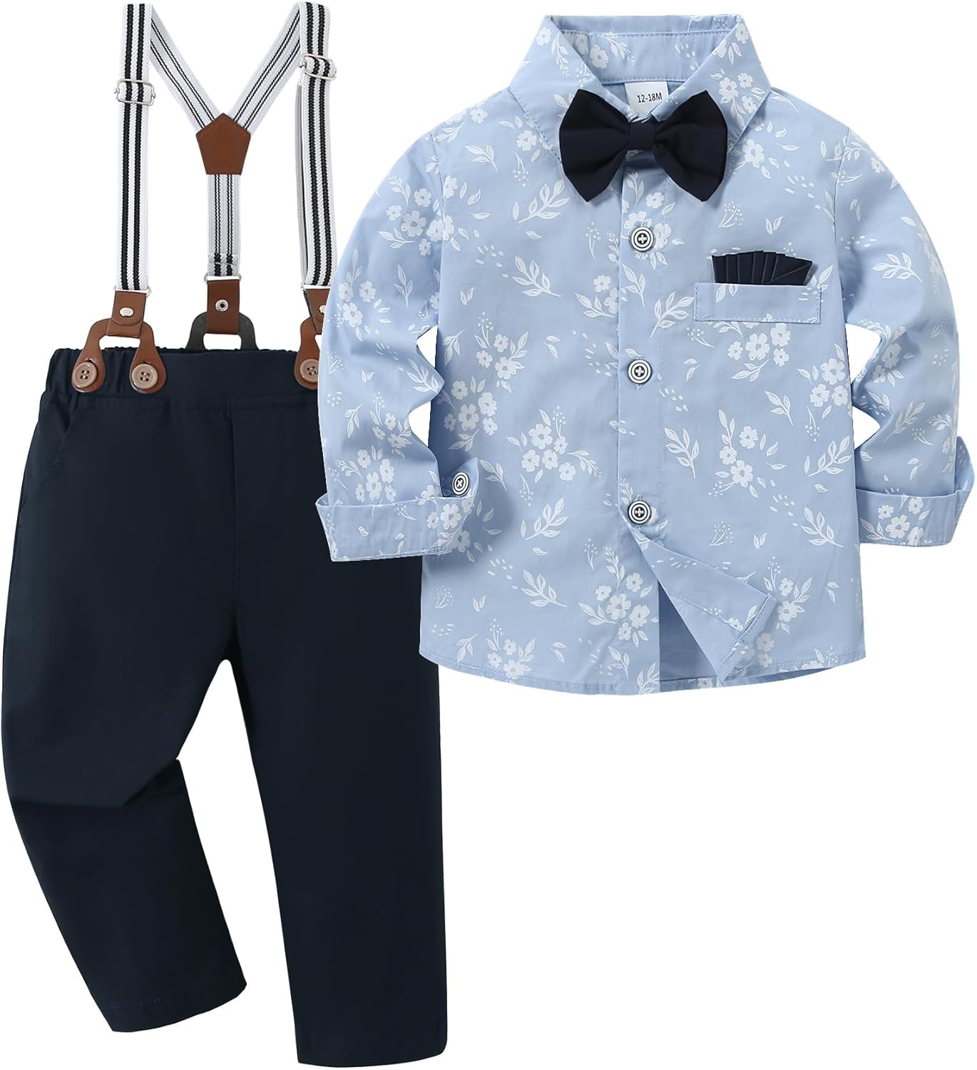 YALLET Toddler Baby Boy Clothes Suit Gentleman Wedding Outfits Formal Dress Shirt+Bowtie+Suspender Pants