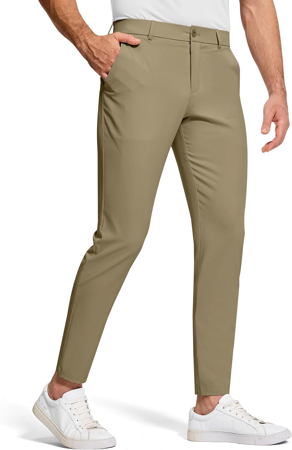 Men's Golf Dress Pants 30" Inseam Stretch Skinny Tapered Lightweight Breathable Chino Trousers with Pockets for Casual Work Dark Khaki 34