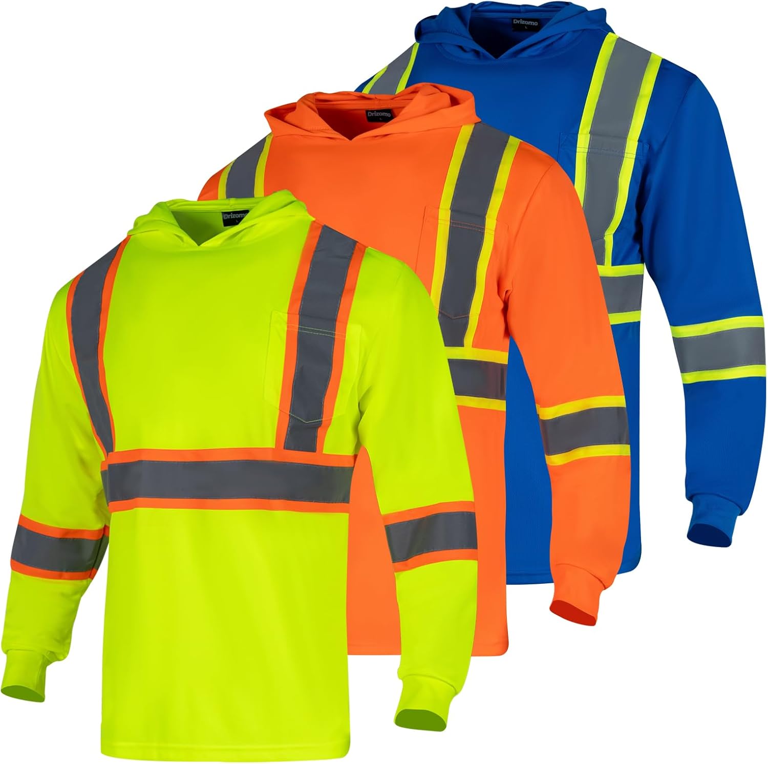 High Visibility Safety Shirts for Men with Hood Reflective Long Sleeve Shirt ASIN Class 3 Hi Vis Construction T Shirt