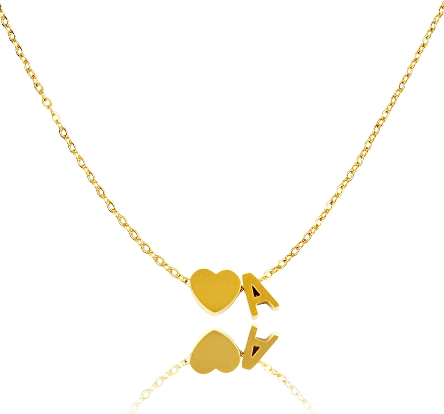 ZOORON Gold Heart Initial Necklace for Women - 18K Gold Plated Letter A-Z Pendant Necklace Dainty & Trendy Heart Necklaces, Tiny Personalized Pendant Name Birthday Gifts