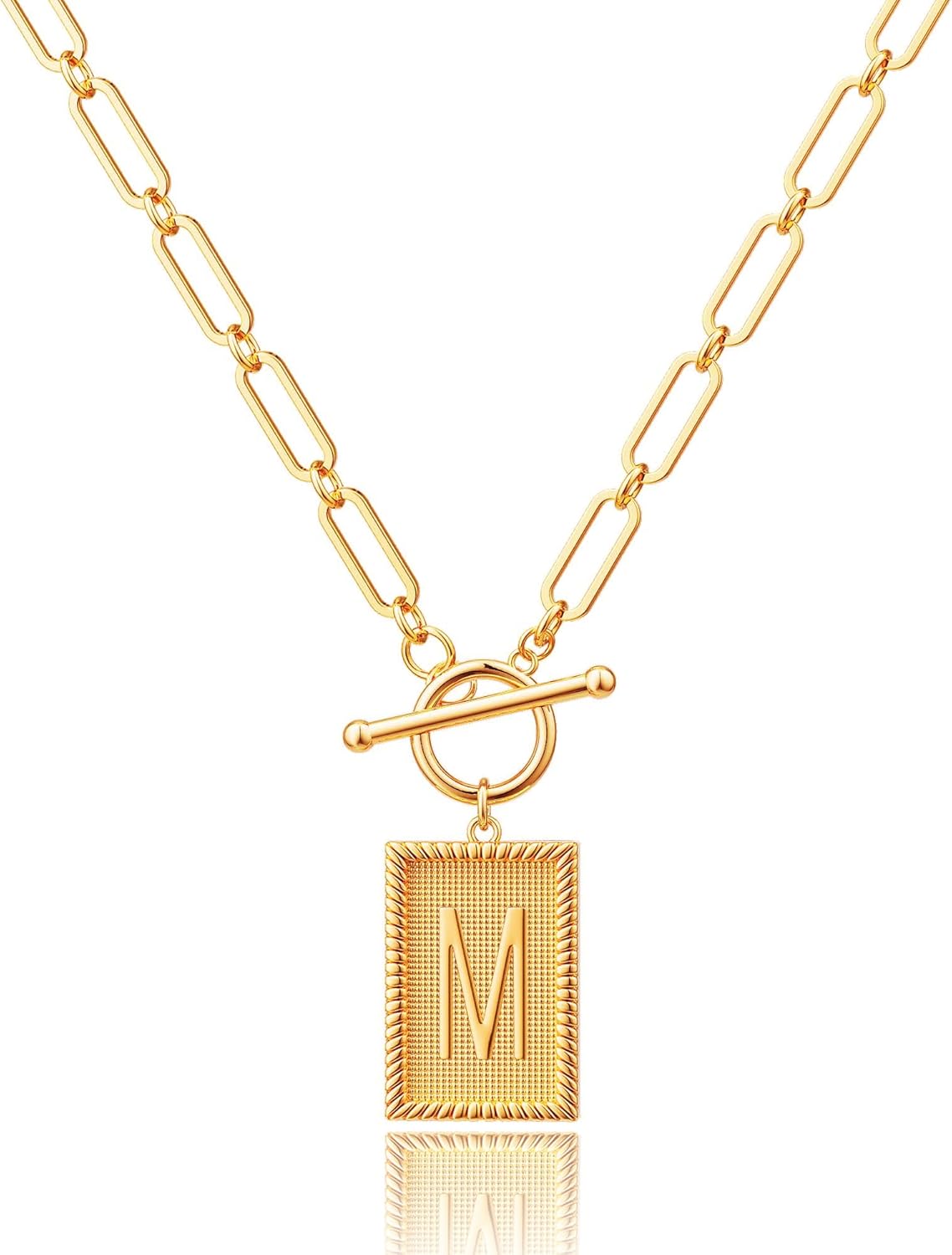 Valentines Day Gifts 14K Gold Plated Initial Letter Necklace for Women, Personalized Alphabet Pendant with Inspirational Engraving, Paperclip Chain Non-Tarnish Jewelry Gift for Her