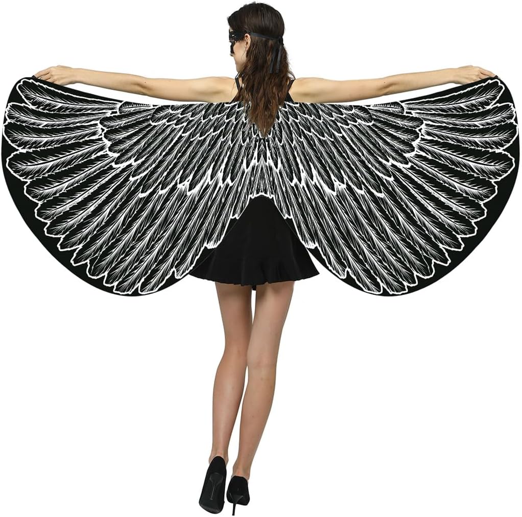 GRAJTCIN Womens Butterfly Wings Shawl Adult Halloween Costume Double Sided Black Bird Fairy Cape with Mask (Two-Sided Black)
